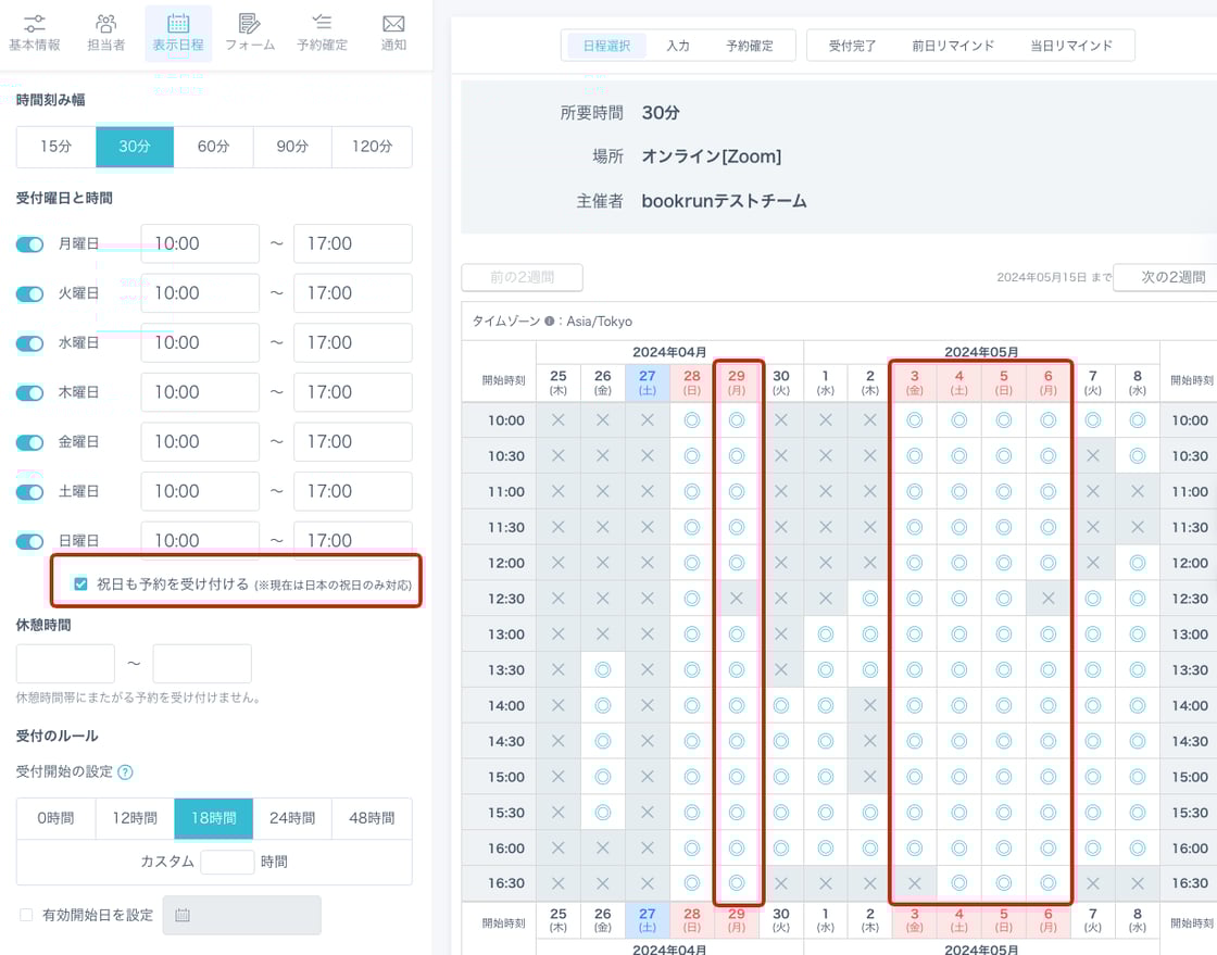 終日予定はブックボードに反映されません終日予定をいれてカレンダーを☓にしたい場合Googleカレンダーを利用されている方Outlook予定表(Microsoft)を利用されている方祝日も日程調整を受け付けしたい場合